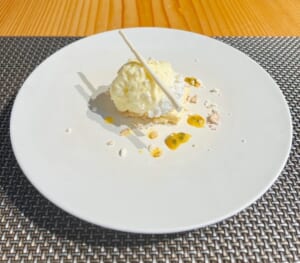 「酒粕のフロマージュスフレ パイナップルのコンポートとパッションフルーツのムース」